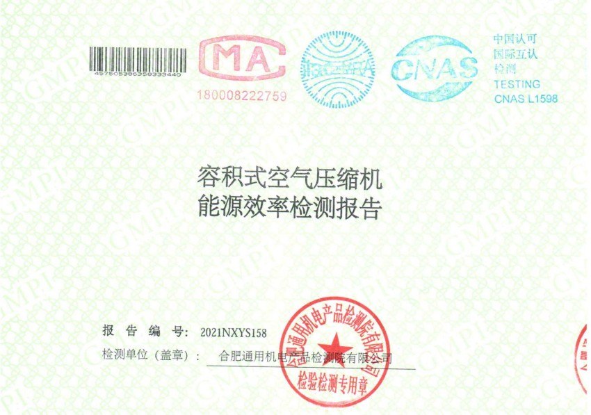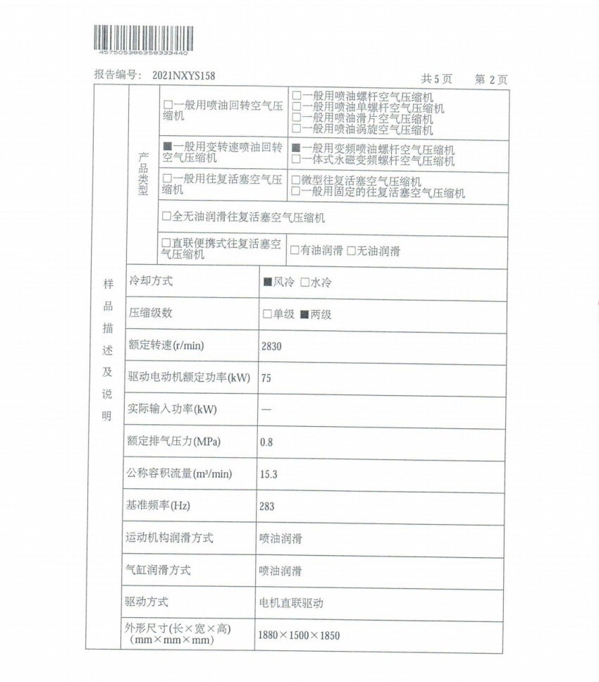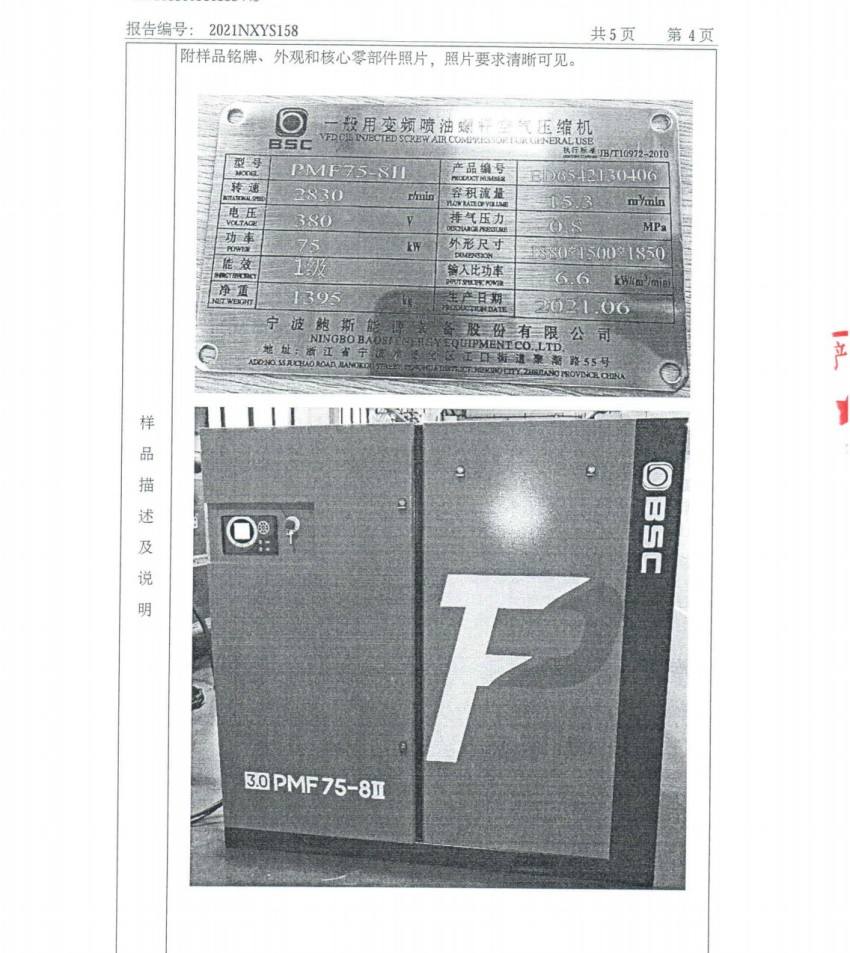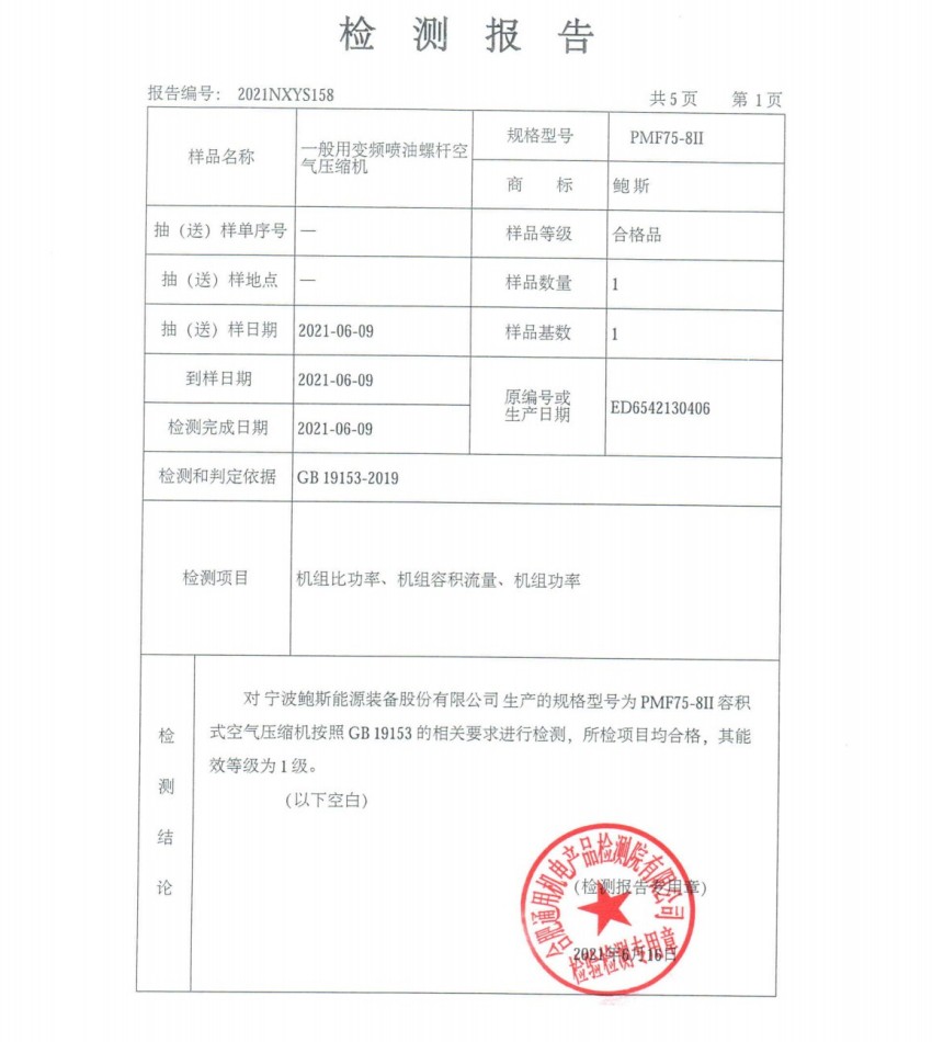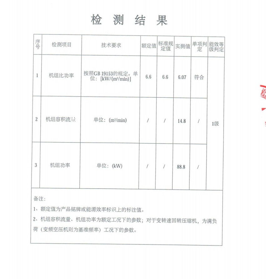 | 比功率kW/(m3/min)(GB19153-2019合肥通用所检测数据 | 6.067 | |||
