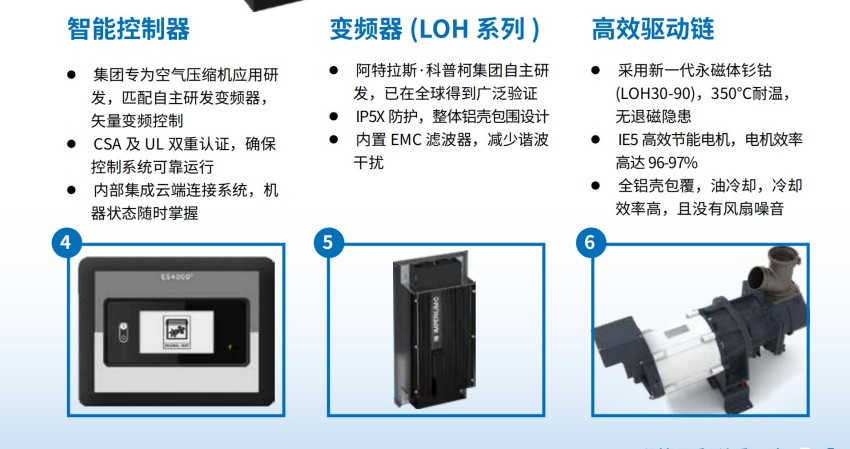 螺杆空压机,无油空压机,激光切割专用空压机,冷冻式干燥机,吸附式干燥机,精密过滤器,余热回收