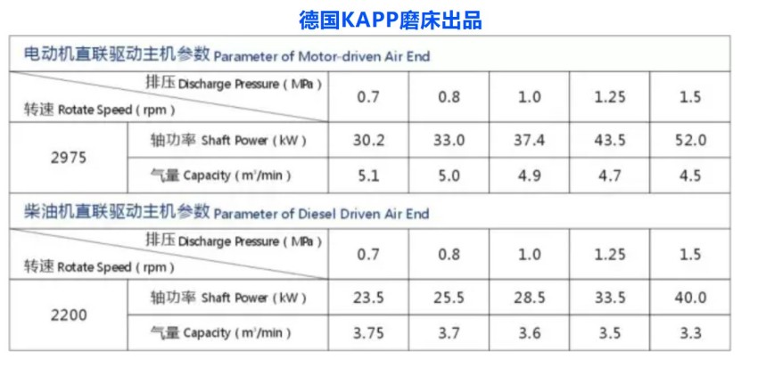 鲍斯主机YNE133RA机头排气量范围:4.5m³/min-5.1m³/min