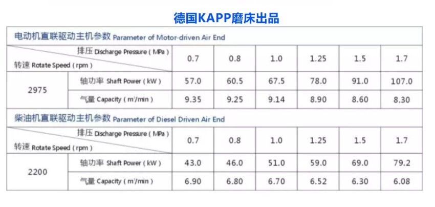鲍斯主机YNE163RA机头排气量范围:8.3m³/min-9.35m³/min