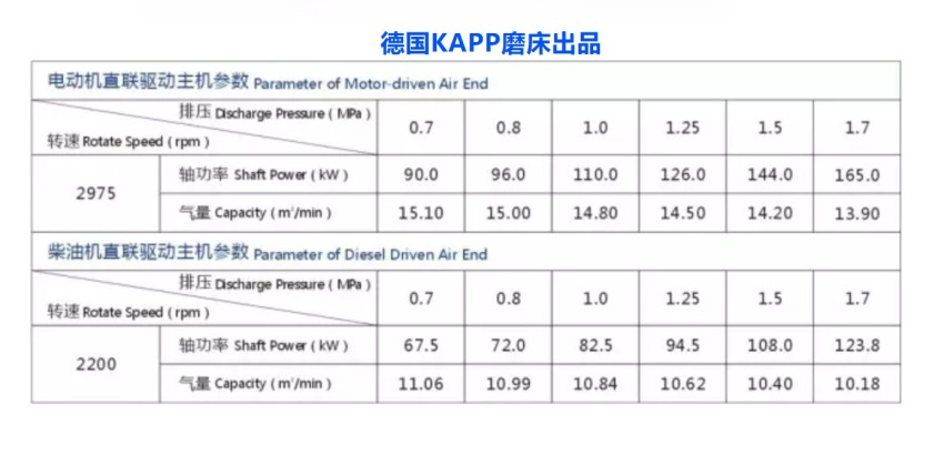 鲍斯主机YNE178RB机头排气量范围:13.9m³/min-15m³/min