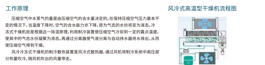 风冷型冷冻式干燥机是通过环境空气流动来实现对压缩空气的冷却与干燥。