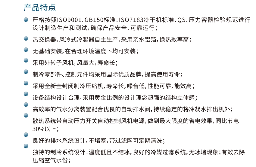 3.安装便捷:风冷型冷冻式干燥机的结构紧凑,占地面积小,其安装过程相对简单便捷。