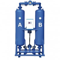 再生吸附式干燥剂由两个双联机筒组成,机筒里装满干燥剂(干燥剂的表面能吸收水分)。两个机筒轮流接通和关闭气流,交替进行干燥和再生运行,从而使气流能持续接触干的干燥剂来达到脱湿干燥的目的。一定温度下,水的吸附量随温度升高而减少;即低温或高压下水分被吸附,在高温或低压水分被解吸。干燥机正是依此原理而工作的。