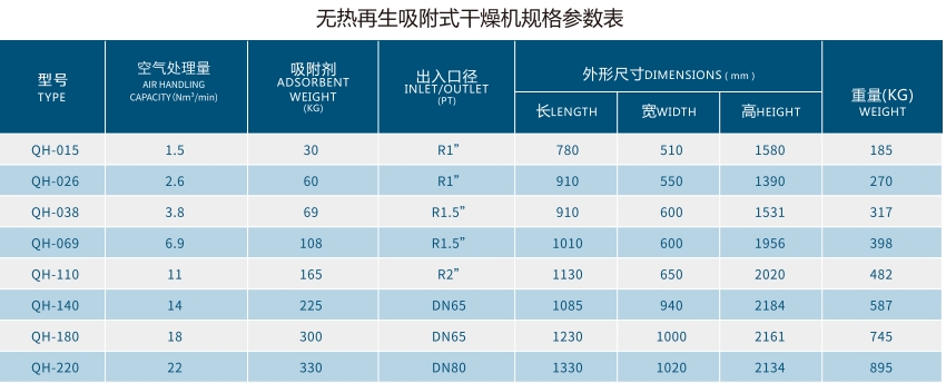 无热再生吸附式干燥机是根据“工作压力转变”来做到干躁实际效果。因为气体容下水蒸气的工作能力与工作压力呈反比例。其干躁后的一部分干躁气体(称之为再生气)缓解压力澎涨至大气压力,这类工作压力转变使澎涨气体越来越更为干躁,随后让它穿过未接通气旋的需再生的干燥剂层(即已消化吸收充足水蒸气的喷雾干燥塔),干躁的再生气吸出干燥剂里的水份,将其弄出干燥剂来做到脱湿干躁的目地。无热再生吸附式干燥机一般要耗费15%上下的再生空气压缩。