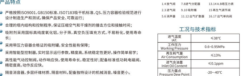6. 再生不彻底。再生过程中,如果再生温度不够、再生时间不足或者再生气量不足,都可能导致吸附剂再生不彻底,影响下一个吸附周期的干燥效果。