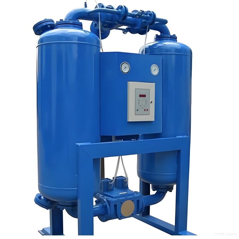 吸附式干燥机的工作原理主要基于物理吸附作用,利用多孔性固体吸附剂(如活性氧化铝或分子筛)选择性地吸附压缩空气中的水蒸气,从而达到深度干燥的目的。其核心是双塔交替工作循环:一个塔在吸附水分时,另一个塔在进行再生(脱附水分)