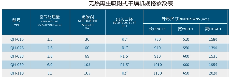 无热吸附式这种类型的干燥机利用部分经过干燥处理的压缩空气,经过降压后反向吹扫吸附剂,从而达到吸附剂再生的目的。无热吸附式干燥机的主要构成部分包括两个装有吸附剂的干燥筒、切换阀、单向止回阀、消声器以及控制器等关键组件。这些部件协同工作,确保了干燥机的稳定运行和高效性能。