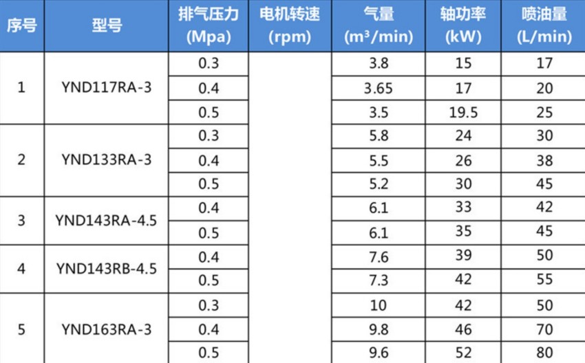 鲍斯YND系列单级低压螺杆主机型号: