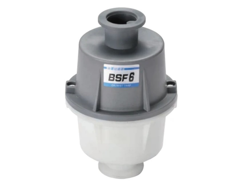 真空泵油雾过滤器,一般安装在真空泵的排气口,过滤真空泵运行时所排出的油雾,油雾穿过滤芯,其中的泵油分子被滤芯拦截,洁净的空气穿过滤芯被排出。当越来越多的泵油分子被滤芯拦截后,由于重力的原因,泵油分子汇聚,最后滴落在回收区域。