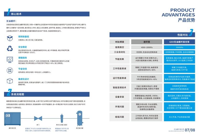 与传统油封式真空泵相比,无油螺杆泵具有三大显著优势:首先,全程无油运行避免了油蒸气对工艺环境的污染,特别适用于制药行业的无菌生产要求;其次,37kW大功率电机配合大转矩变频技术,可在低转速下保持稳定抽速,节能效果显著;最后,不锈钢结构与模块化设计使设备具备更强的耐腐蚀性,维护周期延长至传统型号的2倍以上。实测数据显示,其极限真空度可达0.1mbar,抽速稳定性误差控制在±3%以内。
