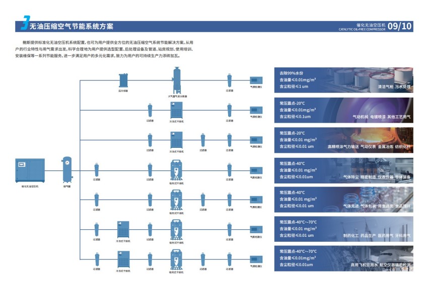 除了上述领域外,无油螺杆空压机还在纺织、电力、冶金等行业有着广泛的应用。它以其高效率、稳定的性能,为各行业的生产提供了强有力的支持。