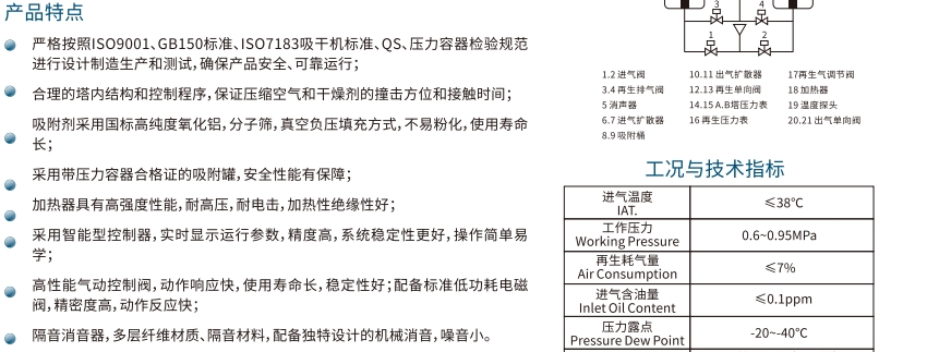 微热再生吸附式干燥机在工业现场的核心特点: