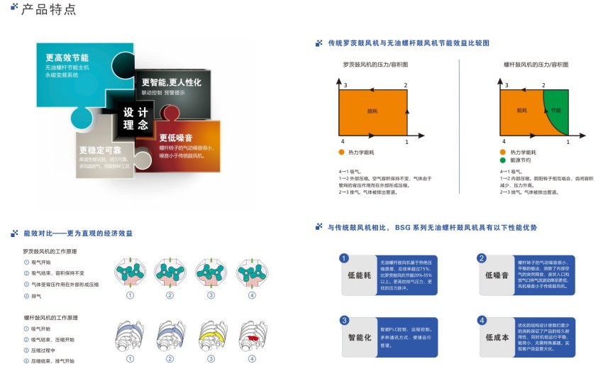 无油螺杆鼓风机在污水处理、水泥、化工、发电厂和纺织等多个行业中展现出了卓越的性能。在污水处理行业,它常被用于水和废水的处理、曝气以及过滤器反冲洗等关键工艺中。水泥行业的散料输送、化工行业的气体输送、火力发电厂的脱硫脱酸工艺,以及纺织行业的化纤加弹加捻等,也都离不开无油螺杆鼓风机的助力。