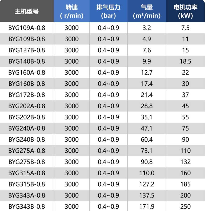 鲍斯二代螺杆鼓风机BYG系列机头型号: