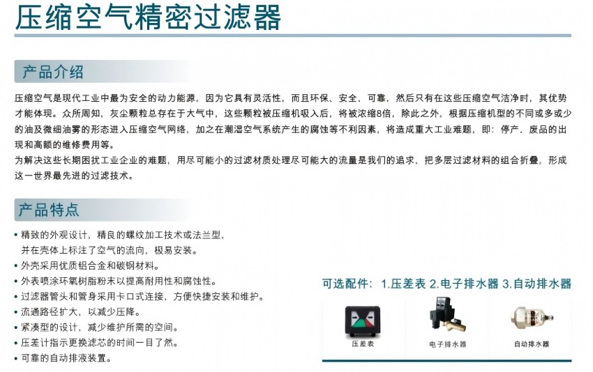 压缩空气精密过滤器选型