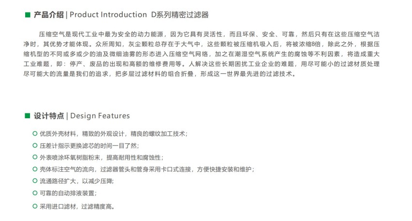 根据功能来选择,因为空压机系统有前端过滤器也有后置过滤器,他们的功能不一样,有除油、除水、除杂质、除尘的。
