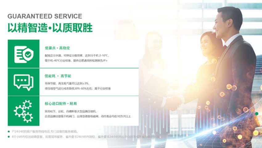 一般可以满足处理量小气量压缩空气。根据变压吸附、再生循环的原理,利用自热进行吸附干燥。优点是结构简单,一次性投入成本小。缺点是再生耗气量大,约为15%~25%(JB/T 10532 – 2017⑴中规定≤25%)如果再生耗气量大,无疑会增加每年的运行成本。