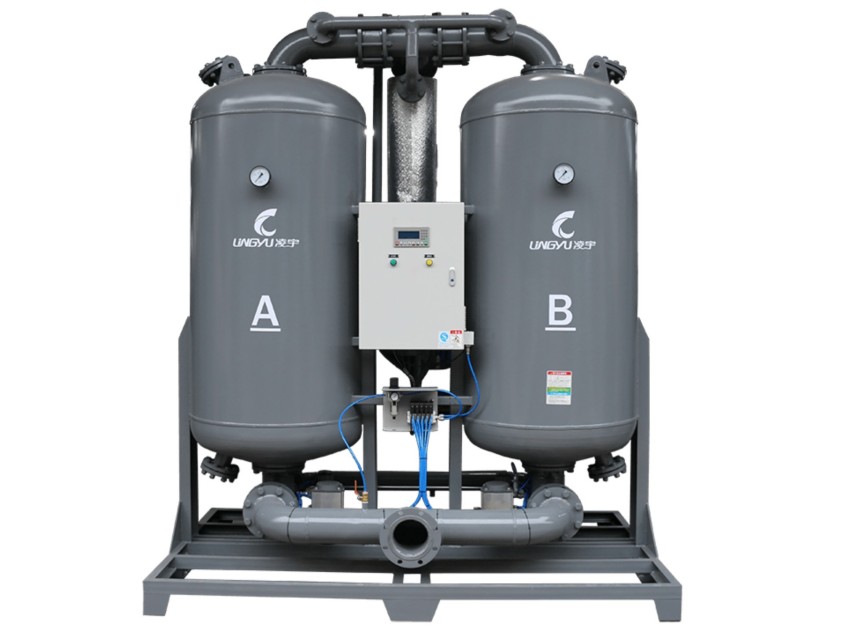 微热吸干机主要通过吸附和再生的方式去除空气中的水分。在吸附过程中,湿空气经过过滤器后,进入吸附塔进行吸附,从而得到干燥的空气。在再生过程中,通过加热再生气体,使其进入另一吸附塔对吸附剂进行再生,恢复其吸附能力。