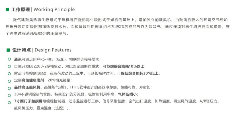 凌宇HRB-E120微气耗鼓风热再生吸附式干燥机设计特点