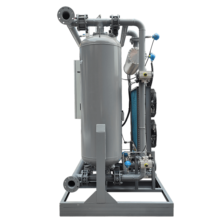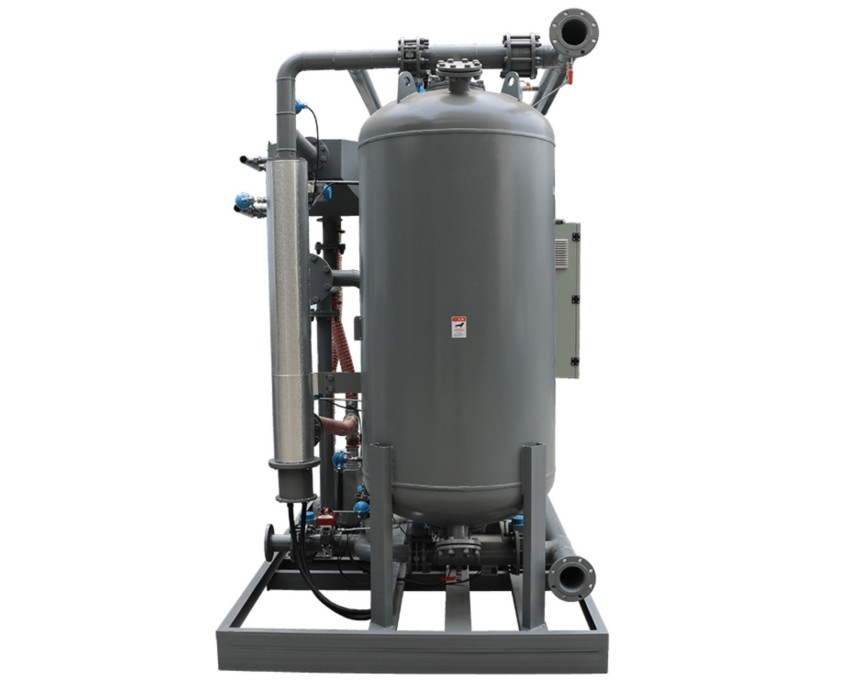 鼓风再生式吸附干燥机的工作原理基于吸附和再生过程的交替进行。首先,干燥机吸入湿空气,通过空气吸附塔中的吸附剂(通常为活性吸附剂或分子筛),这些吸附剂有效吸附当水分达到一定的废水度后,鼓风机启动,从吸入外部新鲜空气,并吸附后通过吸附剂层。这过程使得吸附剂中的水脱附并排放到大气中,实现了吸附剂层再生完成后,吸附塔通过冷风吹扫,准备进入下一个吸附剂周期。这种循环过程保证了干燥机的高效能和持续运行。