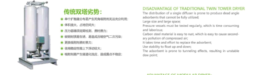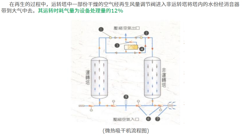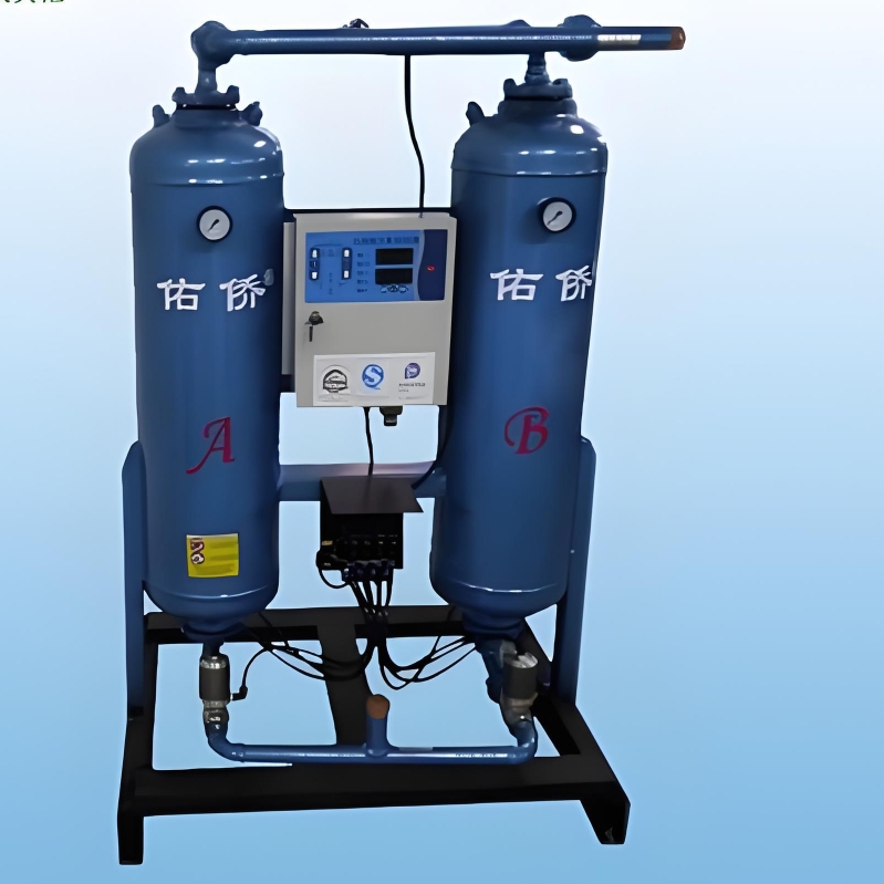 空气经过空压机压缩后,会通过压缩空气入口管进入系统。这些空气随后会经过气阀,进入两个塔中的一个——运转塔。在运转塔中,湿气会被吸附剂吸收,从而实现空气的干燥。当空气到达塔顶时,其中的水份已基本被完全吸收,露点温度可低至-40℃,确保了高效的干燥效果。