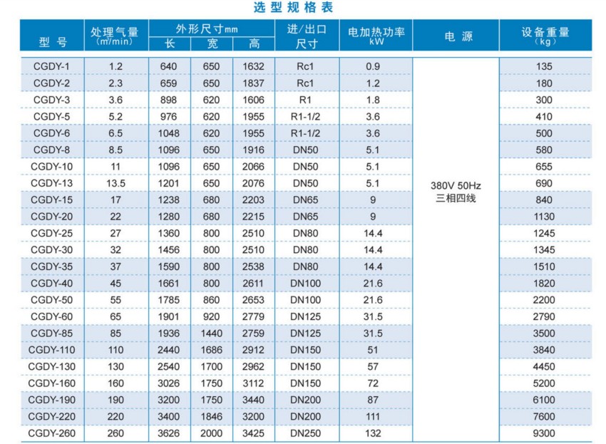 双塔交替连续工作输出干燥洁净的压缩空气。其净化空气含水量可达露点-40℃以下,从而获得深度干燥的无水无油的高纯度的压缩空气满足用气的需要。采用加热器升温再生气,再生效果好。