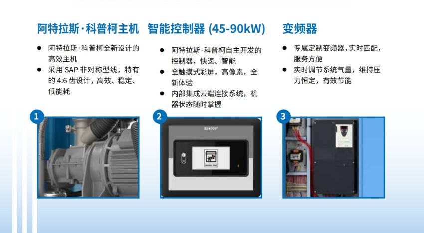 螺杆空压机,无油空压机,激光切割专用空压机,冷冻式干燥机,吸附式干燥机,精密过滤器,余热回收