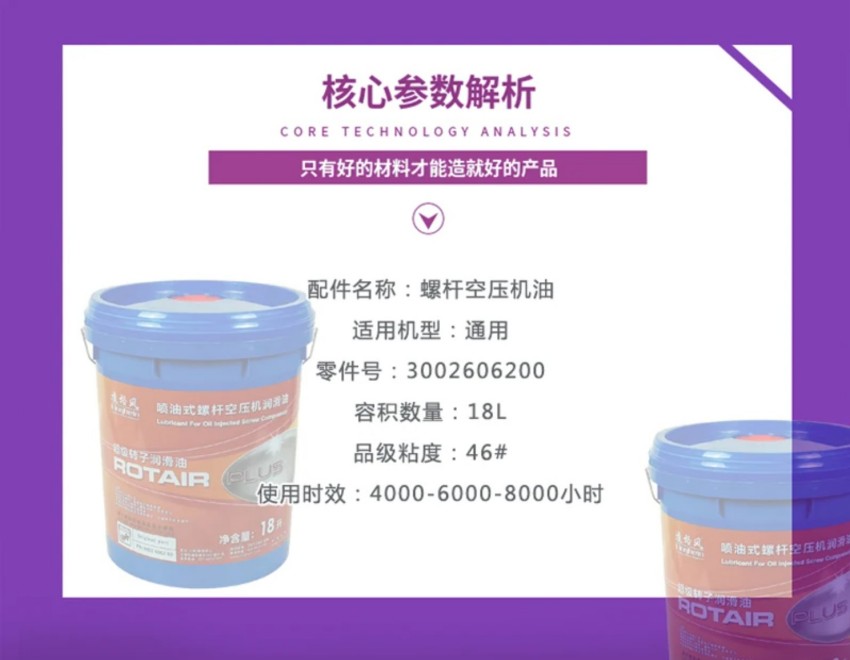 凌格风螺杆式空压机专用油以合成油为基础油,并加有极压、抗氧、抗腐蚀等多种添加剂精制而成的空气压缩机系统用润滑油。使用寿命为4000小时,如超期服役不更换 会引起润滑油积炭 起泡沫 甚至发生高温引起空压机停机。建议客户定期更换。市场上有廉价的润滑油或者矿物油标榜6000-8000小时的,请客户自行甄别,挣钱不容易,消费别大意。