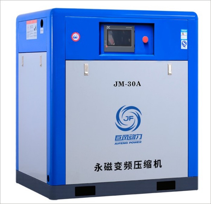 提供JM-250A/JM-250AV/JM-250AZ永磁变频螺杆空压机,功率为185KW,排气量约为26.8-32m³/min,压力0.7-1.2MPa,该机型是由巨风动力生产制造的单级压缩永磁变频系列,欢迎前来咨询。