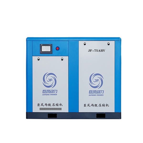 提供巨风JF-75AHV两级压缩永磁变频螺杆式空压机,压力范围0.5MPa-1.3MPa,排气量9.4-15.5立方,型号包含JF-75AHV/0.8、JF-75AHV/0.5、JF-75AHV/1.0、JF-75AHV/1.3等。
